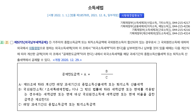 국외소득 종합소득세 신고 및 경정청구 (외국납부세액공제) 관련 문의