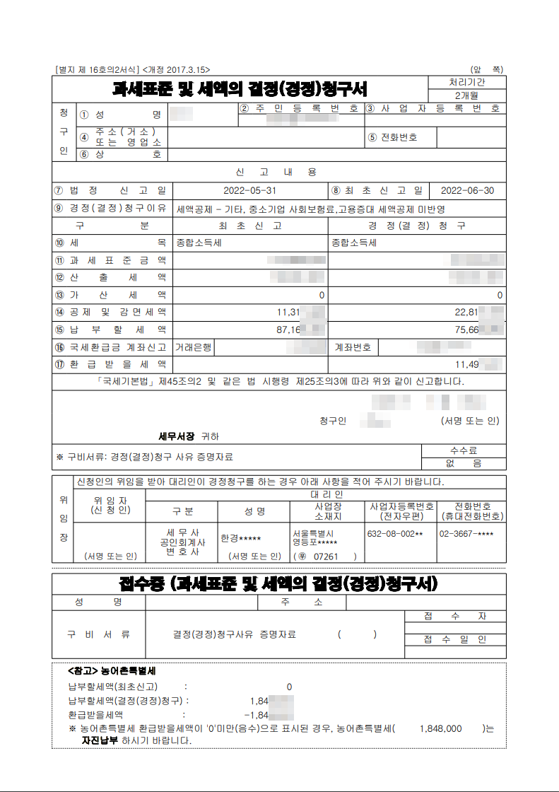 저희는 당초 신고서를 확인 후 추가로 적용 가능한 세액감면 및 세액공제를 검토해 보았습니다. 검토 결과 근로자 고용현황(상시근로자, 급여)을 바탕으로 근거 자료를 준비하고 해당 내용을 토대로 종합소득세 환급 신청을 하였습니다. 세무서에서 저희의 신고 내역을 바탕으로 검토를 완료한 뒤 의뢰인은 기존에 납부하셨던 세금 중 1,000만 원 가량을 다시 돌려받아 사업에 유용하게 활용하실 수 있었습니다. 세액 부담을 덜어드리고, 사업에 도움이 된 것 같아 보람을 느낄 수 있었습니다. 앞으로도 세액감면, 세액공제 대상 여부를 면밀하게 검토하여 의뢰인들의 절세에 도움이 되고자 합니다. |