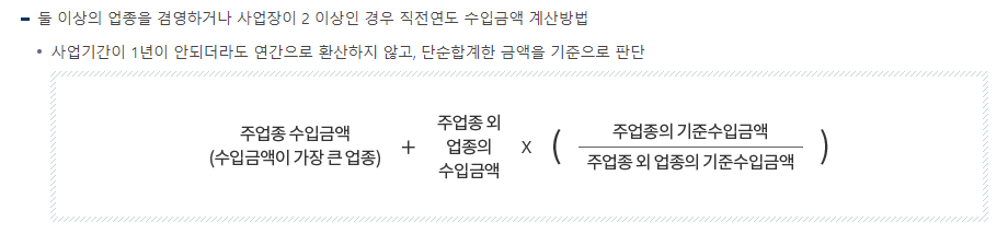 📌둘 이상의 업종을 겸영하거나 사업장이 2 이상인 경우 직전연도 수입금액 계산방법