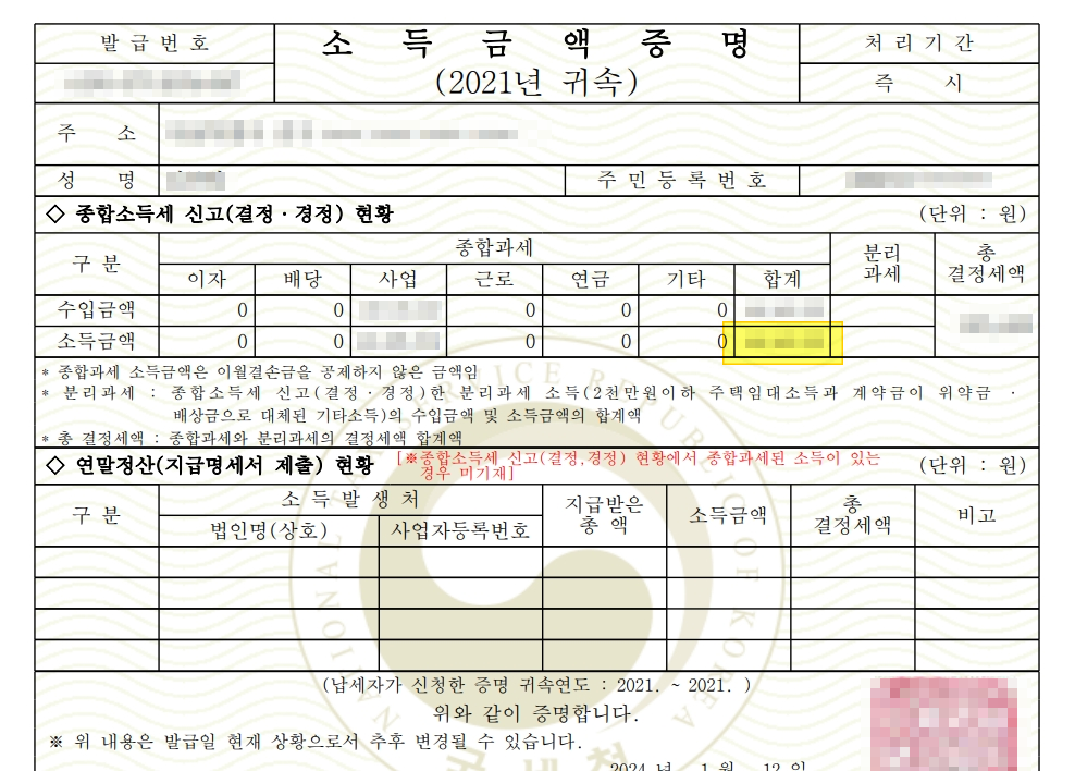종합소득세 수정신고가 완료된 후에는 해당 내역이 반영된 소득금액증명을 발급해 건강보험공단에 보험료를 조정요청 하였습니다.