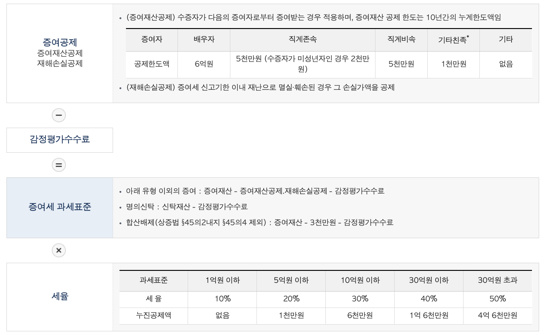 - 증여세: 가족에게 무상 또는 시세 대비 저가로 양도하는 경우 증여세를 납부해야 합니다. (시세 : 매매사례가액, 감정가액 등)