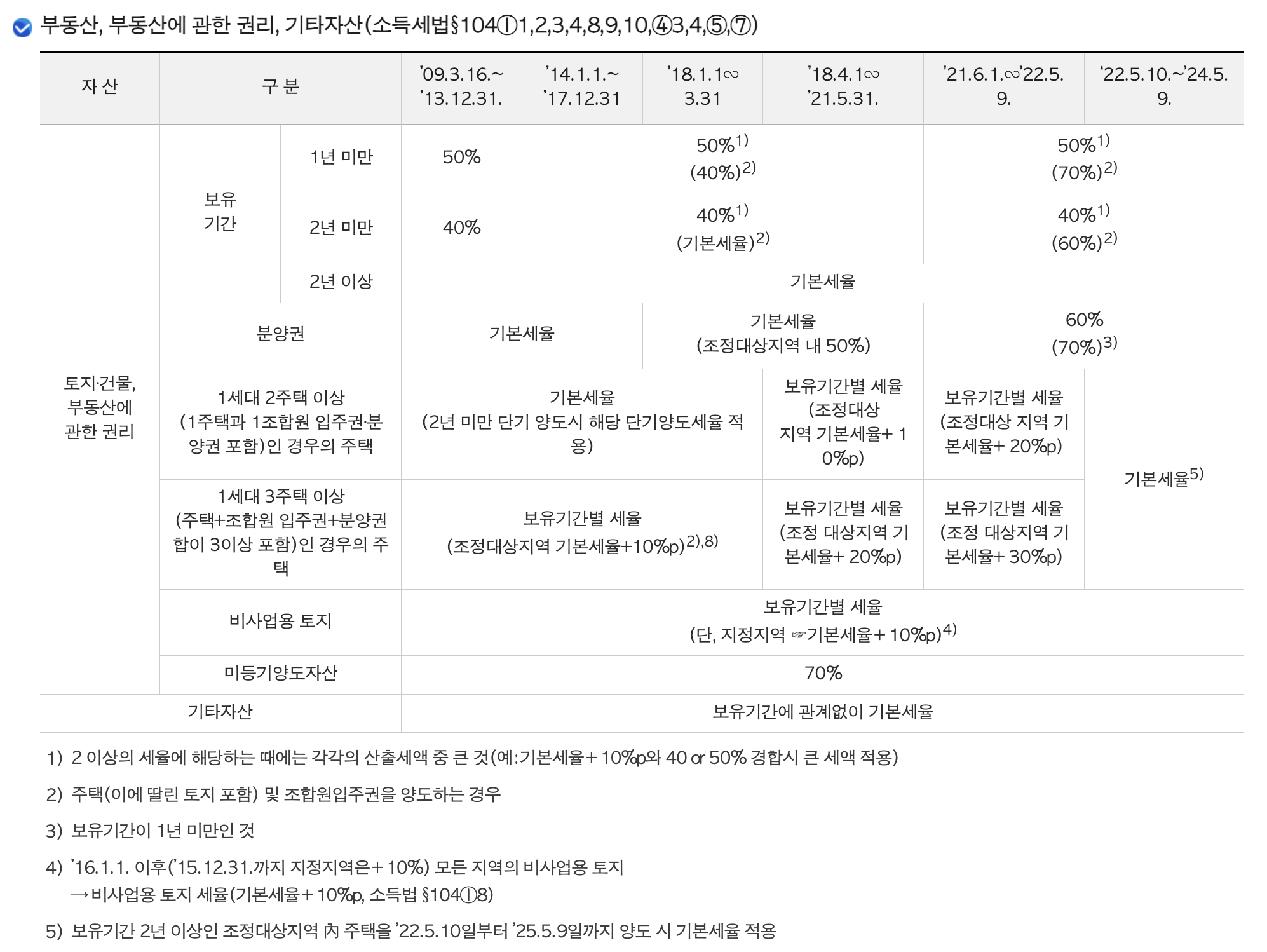 1. 재건축 재개발 조합원 입주권 양도 시 세금: