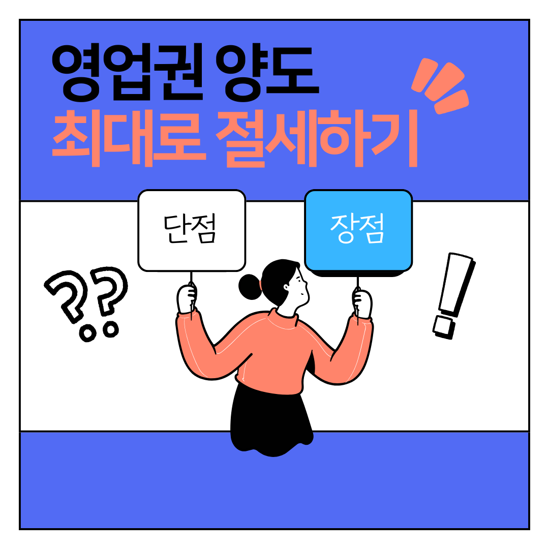 영업권 대가를 어떻게 받을지, 영업권 양도에 따른 장단점 등 고려할 것들이 많아 꼭 전문가의 도움을 받길 권장드립니다.