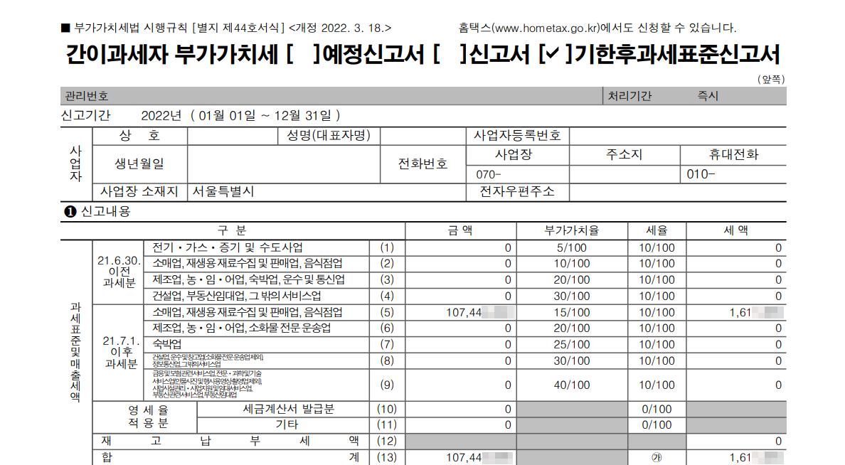 또 한 가지 주목해야 할 부분은 연간 매출액이 1억 원에서 3,200만 원 이하로 대폭 줄어들어, 간이과세 적용 조건에 부합한다는 점입니다.