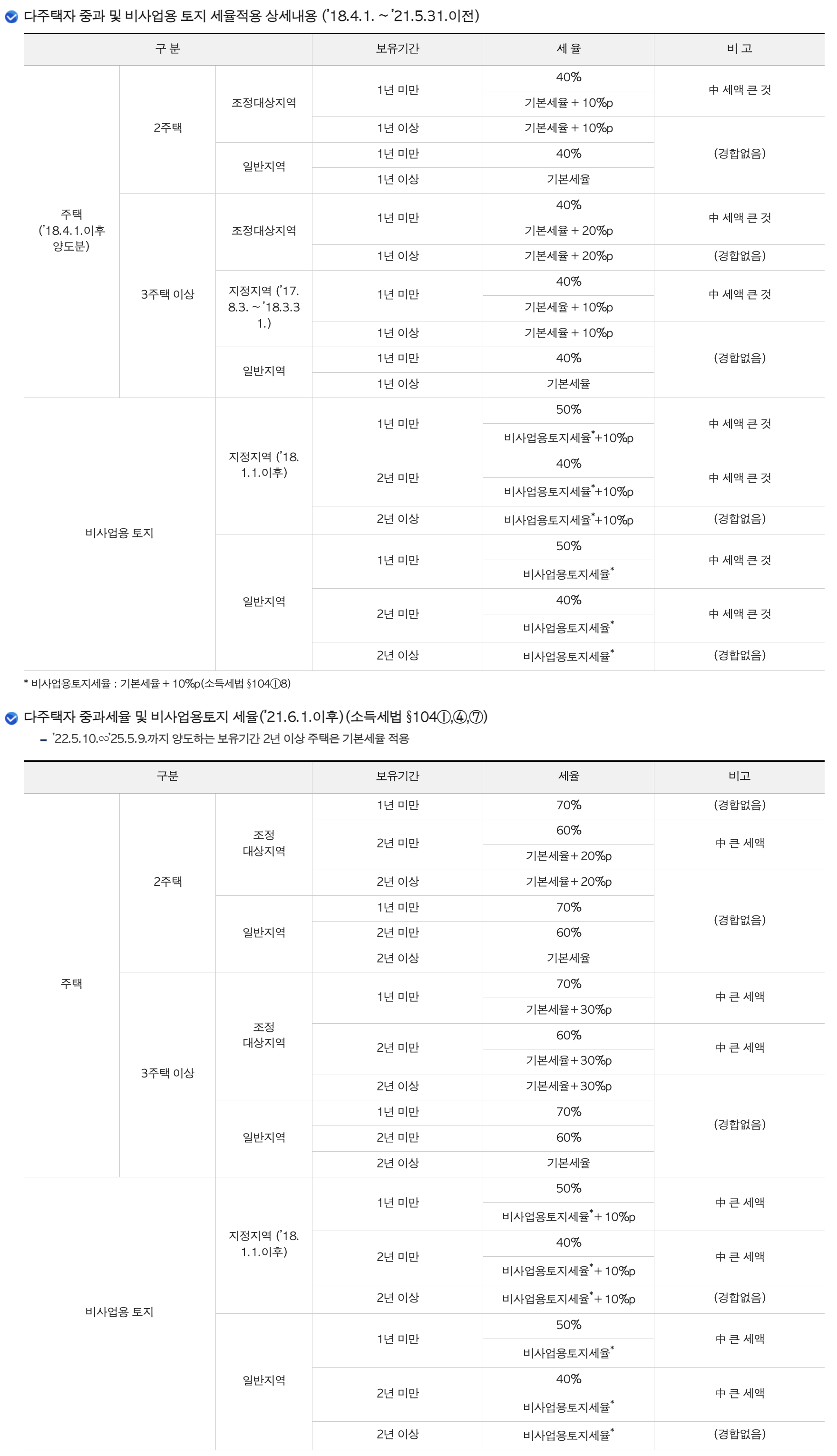 - 종합부동산세: 보유주택 및 가액 등에 따라 개별과세