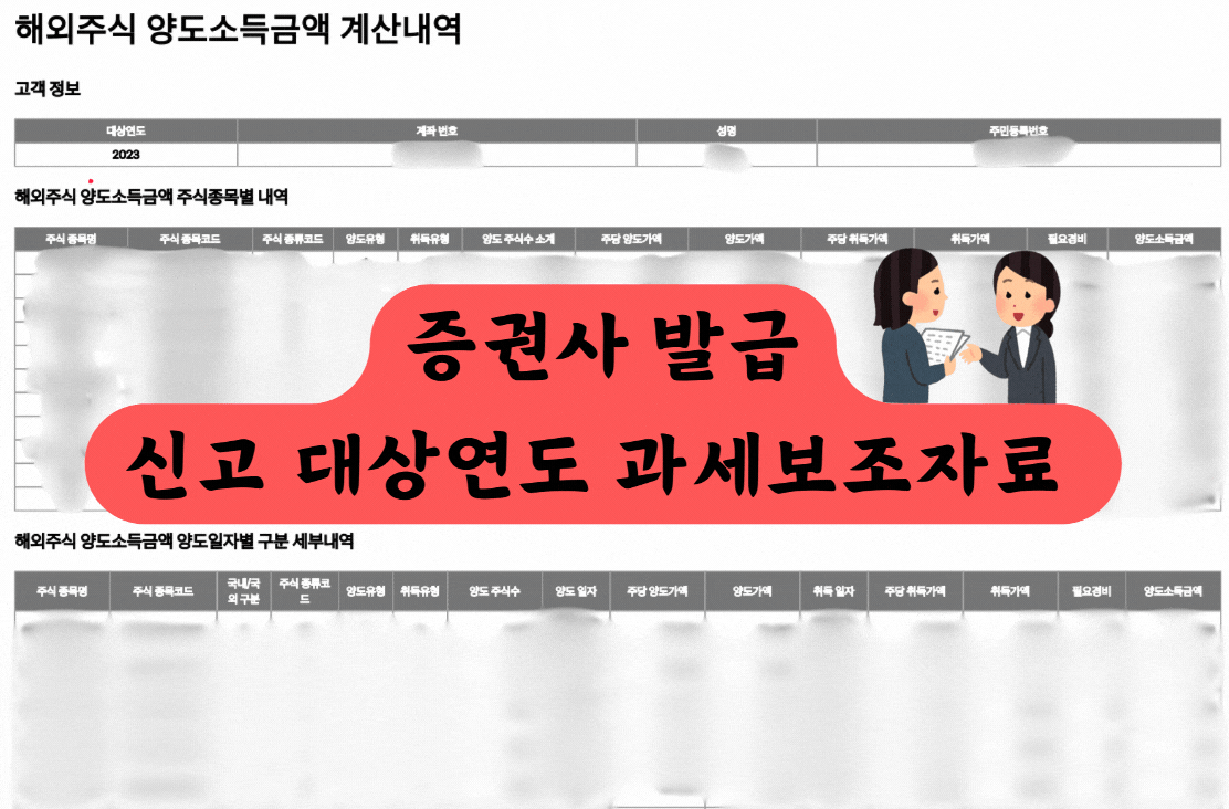 신고를 위해선 이용하는 증권사에서 발급한 신고대상 1년 치의 과세보조자료가 필요합니다.