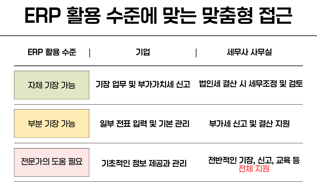 각 기업의 상황에 맞게 ERP와 세무사무실의 역할을 명확히 구분하고,